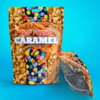 Our custom printed stand-up pouches feature a premium matte exterior and a metallized interior for a professional look. Each pouch includes a push-to-close zipper, universal hang hole, and easy-open tear notches. These pouches are FDA-compliant for direct food contact, making them suitable for snacks, supplements, powders, and more. Available in multiple sizes and fully customizable with your branding.